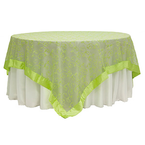 Categories Linens, Organza Overlay with Satin Border, Table Overlays