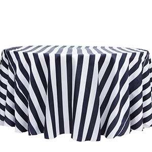 / Black and White Striped Round Tablecloth 120″
