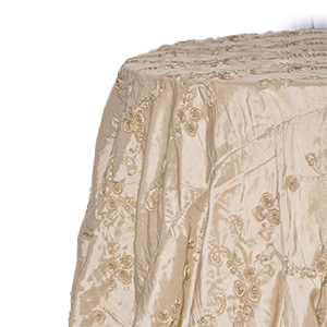 Champagne Taffeta Round Tablecloth with Swirl 120″